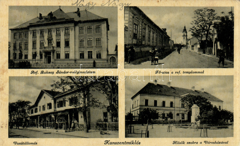Kunszentmiklós Református Baksay Sándor reálgimnázium, vasútállomás, F... https://www.darabanth.com/de/172-Fernauktion/172.0/Ansichtskarten/Ungarn~5000005/Kunszentmiklos-Reformatus-Baksay-Sandor-realgimnazium-vasutallomas-Fo-utca-Varoshaza~II582442