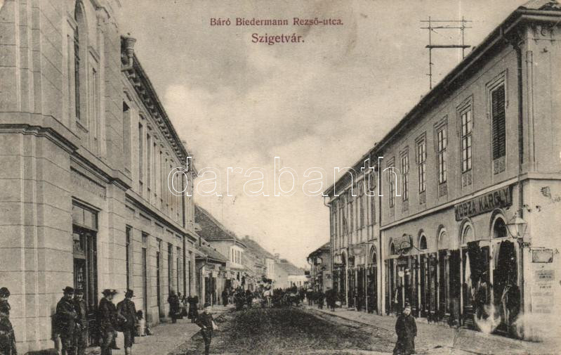 Szigetvár Báró Biedermann Rezső utca Kosza Károly kereskedésével (EB) https://www.darabanth.com/de/172-Fernauktion/172.0/Ansichtskarten/Ungarn~5000005/Szigetvar-Baro-Biedermann-Rezso-utca-Kosza-Karoly-kereskedesevel-EB~II586272