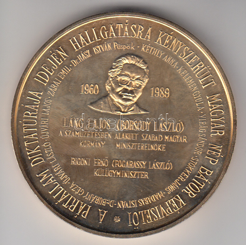 1989. "A száműzetésben 1960-1989 között működő szabad magyar kormány e... https://www.darabanth.com/de/172-Fernauktion/172.0/Numismatik/Ungarische-Edelmetall-Gedenkmunzen-und-Plaketten~5000110/1989-A-szamuzetesben-1960-1989-kozott-mukodo-szabad-magyar-kormany-emlekere-nagymeret~II582268