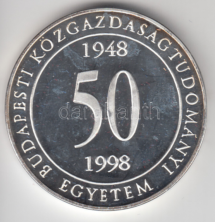 1998. "Budapesti Közgazdaságtudományi Egyetem 50 éves" ezüstözött fém ... https://www.darabanth.com/de/172-Fernauktion/172.0/Numismatik/Ungarische-Edelmetall-Gedenkmunzen-und-Plaketten~5000110/1998-Budapesti-Kozgazdasagtudomanyi-Egyetem-50-eves-ezustozott-fem-emlekerem-disztokba~II582100