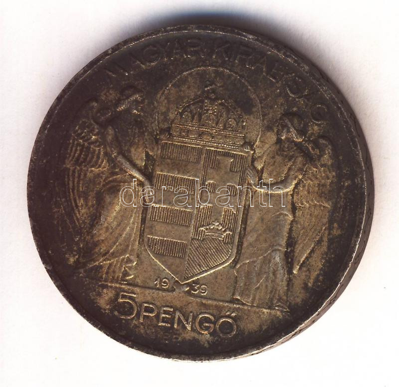 1939. 5P Ag "Horthy - balra" T:2- https://www.darabanth.com/de/172-Fernauktion/172.0/Numismatik/Ungarische-Munzen~5000106/1939-5P-Ag-Horthy--balra-T2-~II582386