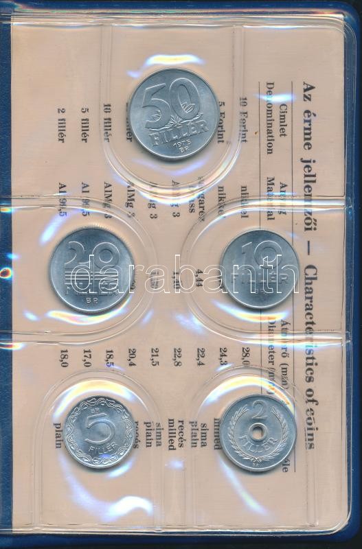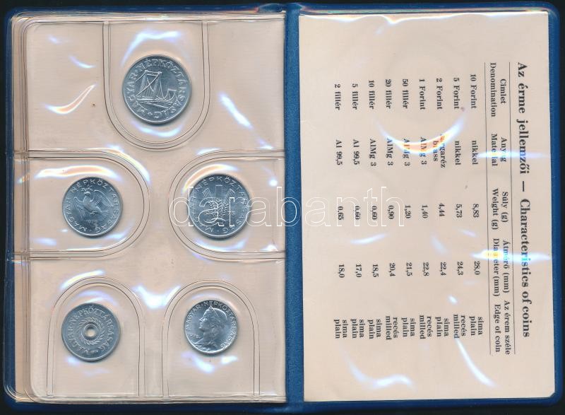 Beschreibung: 1975. 2f-10Ft 9klf "Magyar Népköztársaság" forgalmi érméi "kalauzkék" műbőrtokban T:1