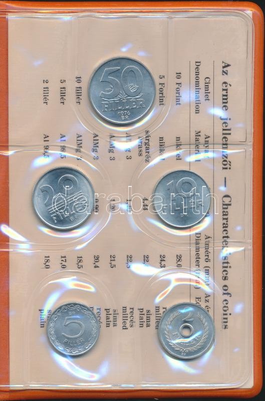 1976. 2f-10Ft 9klf "Magyar Népköztársaság" forgalmi érméi narancssárga... https://www.darabanth.com/de/172-Fernauktion/172.0/Numismatik/Ungarische-Munzen~5000106/1976-2f-10Ft-9klf-Magyar-Nepkoztarsasag-forgalmi-ermei-narancssarga-mubortokban-T1~II587891