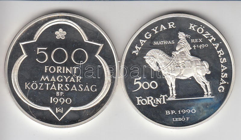 1990. 500Ft Ag + 500Ft Ag "Mátyás király" pár dísztokban T:BU https://www.darabanth.com/de/172-Fernauktion/172.0/Numismatik/Ungarische-Munzen~5000106/1990-500Ft-Ag-plus-500Ft-Ag-Matyas-kiraly-par-disztokban-TBU~II582048