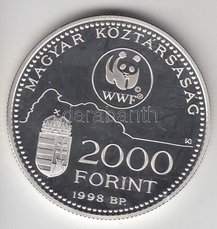 1998. 2000Ft Ag "WWF - Óvd a természetet" dísztokban, tanúsítvánnyal T... https://www.darabanth.com/de/172-Fernauktion/172.0/Numismatik/Ungarische-Munzen~5000106/1998-2000Ft-Ag-WWF--Ovd-a-termeszetet-disztokban-tanusitvannyal-TPP~II581949