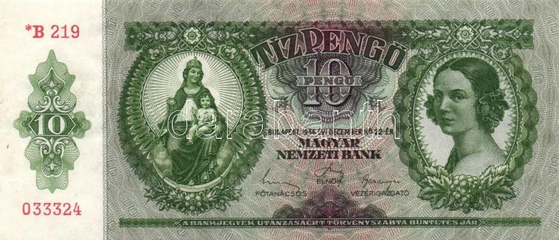1936. 10P "*B 219" T:I,I- https://www.darabanth.com/de/172-Fernauktion/172.0/Numismatik/Ungarische-banknoten~5000105/1936-10P-B-219-TI-I-~II586843