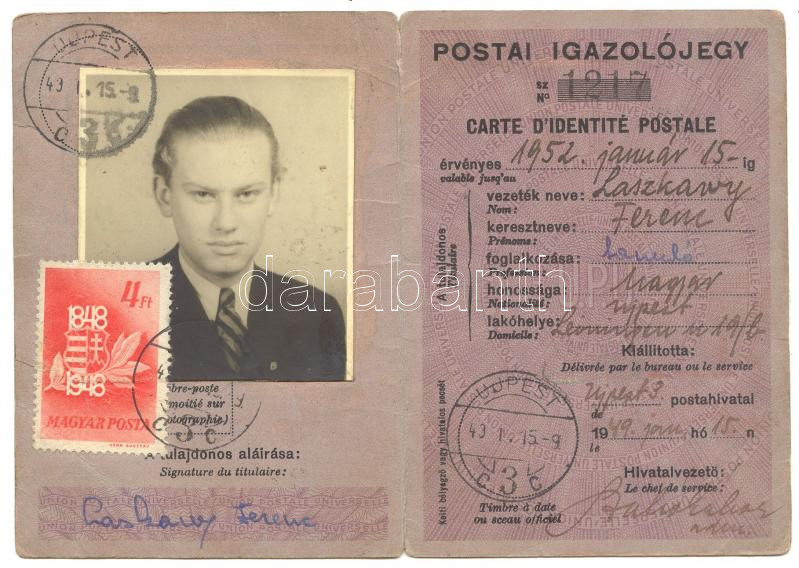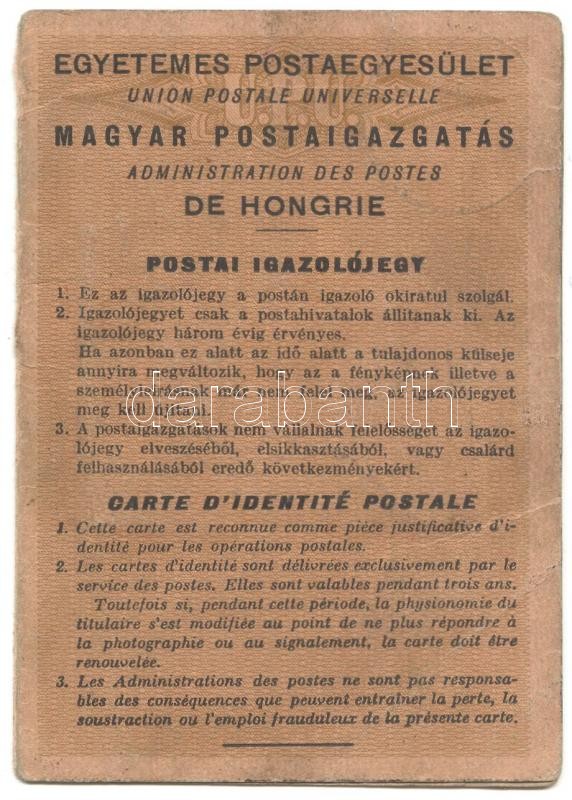 1948 UPU fényképes postai igazolójegy / UPU postal ID https://www.darabanth.com/de/173-Fernauktion/173.0/Andere-Sammelgebiete/Dokument~4000024/1948-UPU-fenykepes-postai-igazolojegy-UPU-postal-ID~II589119