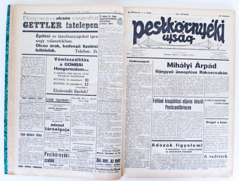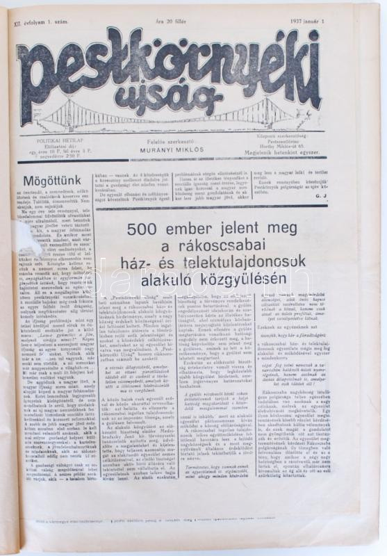 1937 A Pestkörnyéki újság komplett évfolyama keménykötésben. A/2-es mé... https://www.darabanth.com/de/173-Fernauktion/173.0/Andere-Sammelgebiete/Drucksachen~4000012/1937-A-Pestkornyeki-ujsag-komplett-evfolyama-kemenykotesben-A2-es-meretben-szep-allapot~II591886
