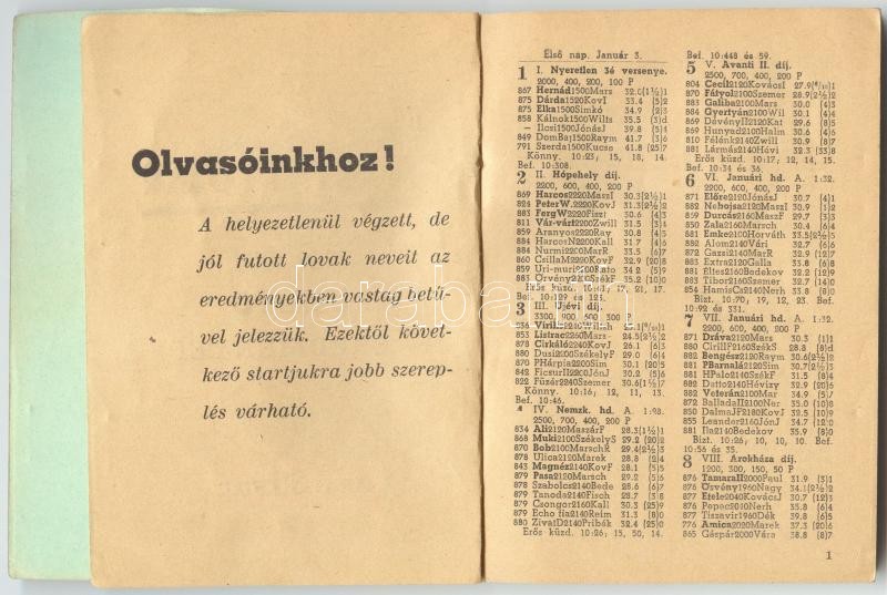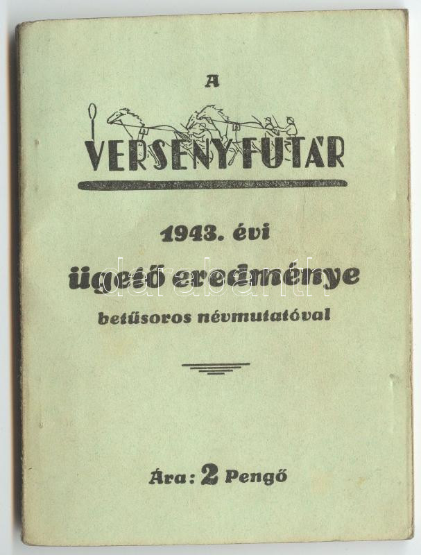 A versenyfutár. 1943. évi ügető eredménye, betűsoros névmutatóval https://www.darabanth.com/de/173-Fernauktion/173.0/Andere-Sammelgebiete/Drucksachen~4000012/A-versenyfutar-1943-evi-ugeto-eredmenye-betusoros-nevmutatoval~II589533