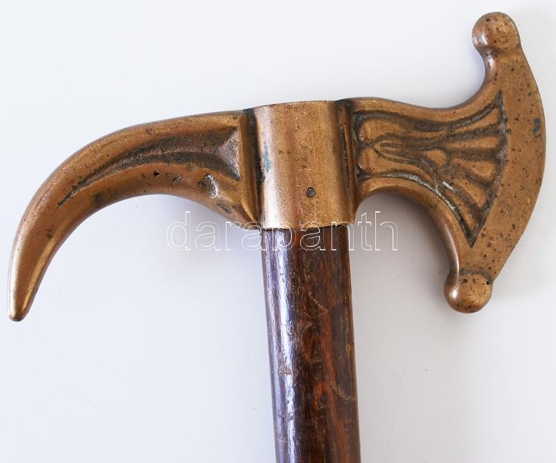 Axe with brass head, 100... https://www.darabanth.com/de/173-Fernauktion/173.0/Andere-Sammelgebiete/Flohmarkt~4000018/cca-1930-Rezfeju-gombos-sarkantyus-fokos--3Cbr3EAxe-with-brass-head-100cm~II591953
