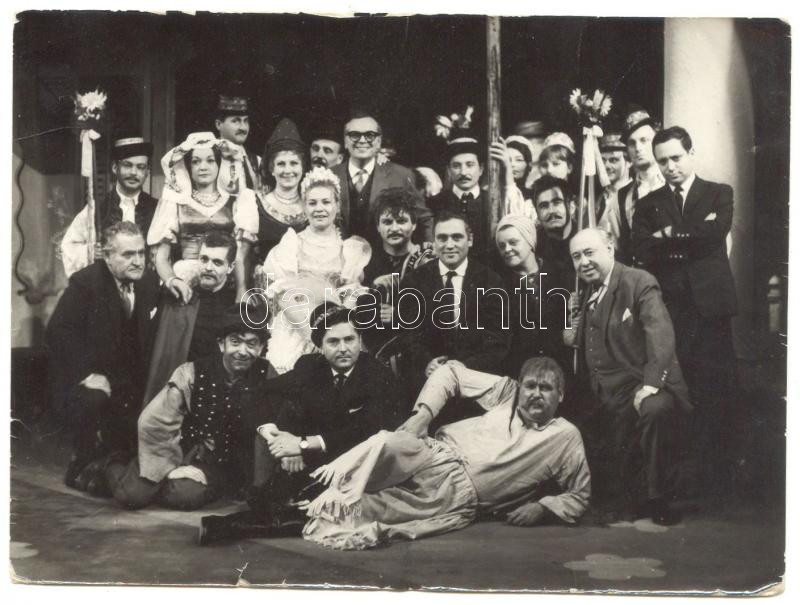 1965 A Kazimir Károly rendezte A falu rossza cÃmű darab stábja a Thália SzÃnház szÃnészeivel, többek között: Dajka Margit, Keleti László, Mécs Károly, Rátonyi Róbert, György László, Kovács Károly, stb., 9x12cm