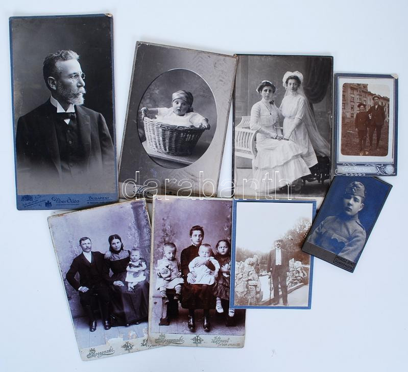 Beschreibung: cca 1900 8db keményhátú fotó, közte kadét portréja /