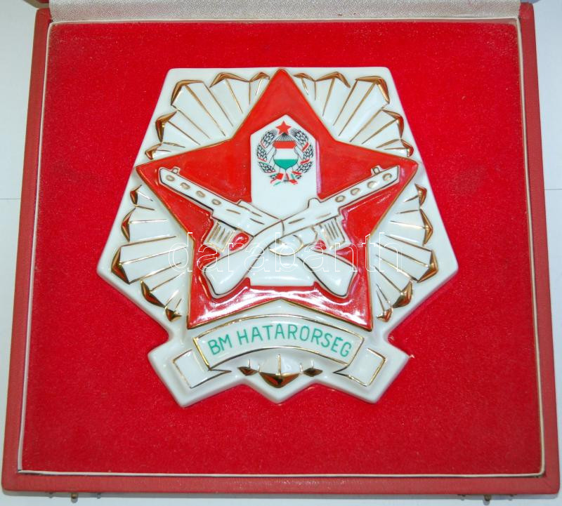 BM. Határőrség nagyalakú Hollóházi porcelán plakett, díszdobozban 22×2... https://www.darabanth.com/de/173-Fernauktion/173.0/Andere-Sammelgebiete/Porzellan~4000010/BM-Hatarorseg-nagyalaku-Hollohazi-porcelan-plakett-diszdobozban-22C39722-cm-Border-gueards-~II588624