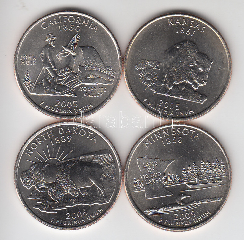 Amerika Egyesült Államok 2005-2006. 1/4$ 4db klf emlékkiadása tanúsítványokkal! T:BU