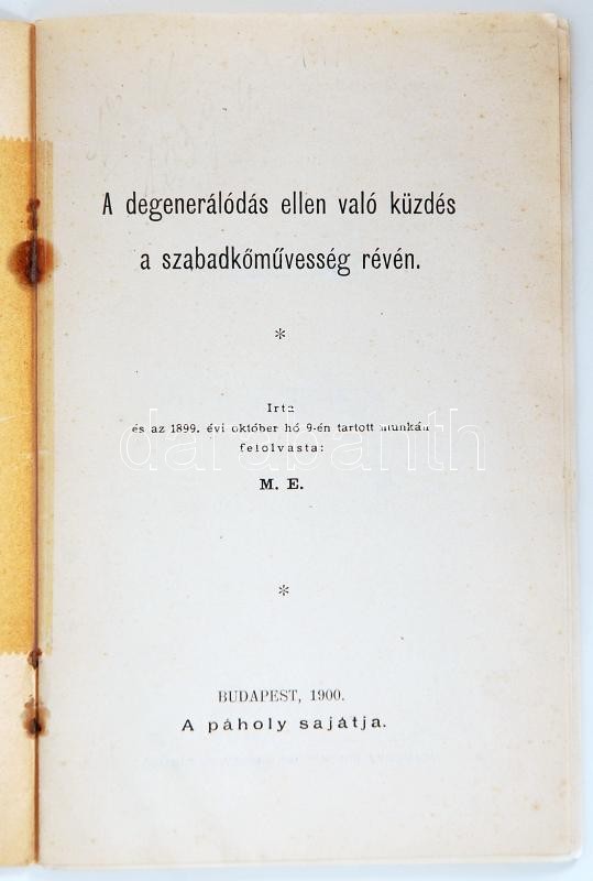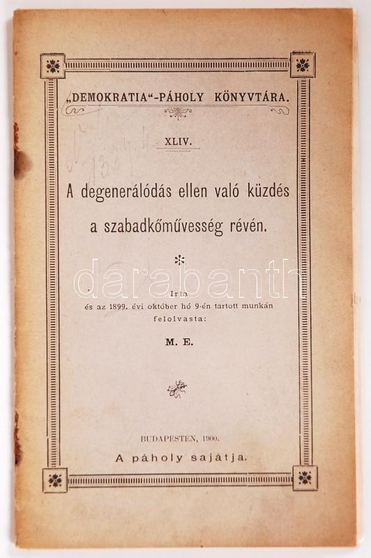 "Demokrata"-Páholy Könyvtára: M. E.: A degenerálódás ellen való küzdés... https://www.darabanth.com/de/174-Fernauktion/174.0/Andere-Sammelgebiete/Bucher-Freimauer~2200022/Demokrata-Paholy-Konyvtara-M-E-A-degeneralodas-ellen-valo-kuzdes-a-szabadkomuvesse~II601958