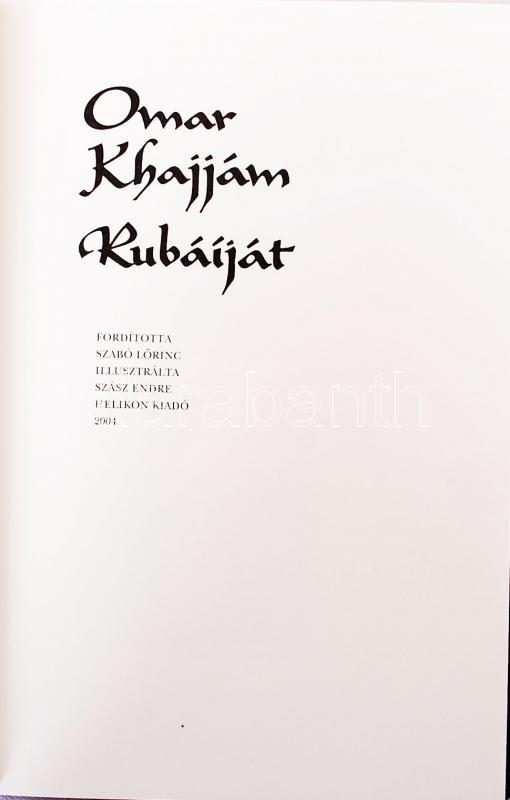 Omar Khajjám: Rubáíját. Helikon 2004. Szász Endre illusztrációival. https://www.darabanth.com/de/174-Fernauktion/174.0/Andere-Sammelgebiete/Bucher-Sonstige-Raritaten~2200038/Omar-Khajjam-Rubaijat-Helikon-2004-Szasz-Endre-illusztracioival~II597604