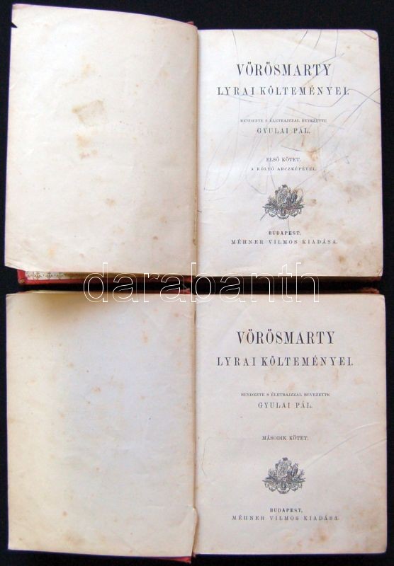 Vörösmarty Lyrai költeményei I.-II. kötet - Sajtó alá rendezte Gyulay ... https://www.darabanth.com/de/174-Fernauktion/174.0/Andere-Sammelgebiete/Bucher-Sonstige-Raritaten~2200038/Vorosmarty-Lyrai-koltemenyei-I-II-kotet--Sajto-ala-rendezte-Gyulay-Pal-Bp-1884-1885-MC3~II405713