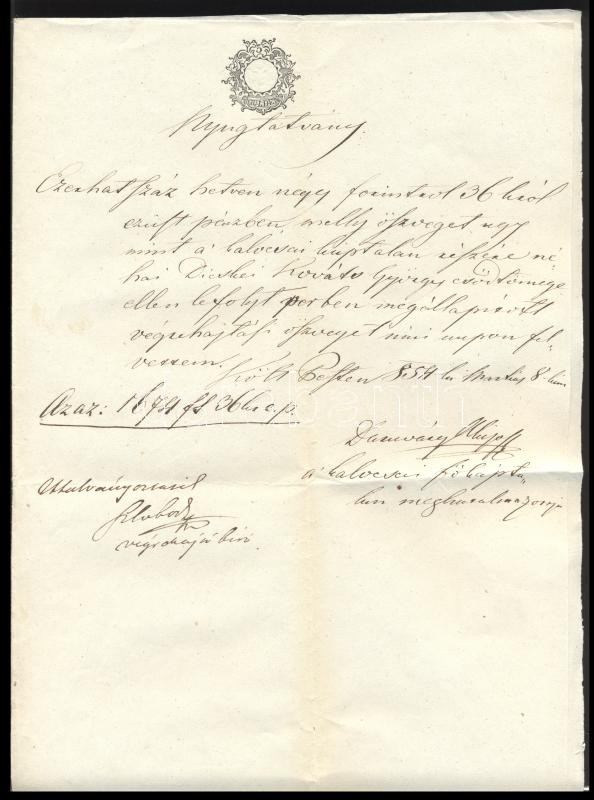 1854 Okmány 5 Gulden szignettával https://www.darabanth.com/de/174-Fernauktion/174.0/Andere-Sammelgebiete/Dokument~2200015/1854-Okmany-5-Gulden-szignettaval~II596259