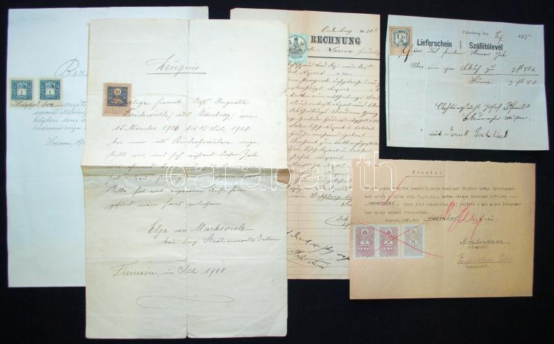 Beschreibung: 1878-1939 5db klf okmánybélyeggel ellátott számla és egyéb irat