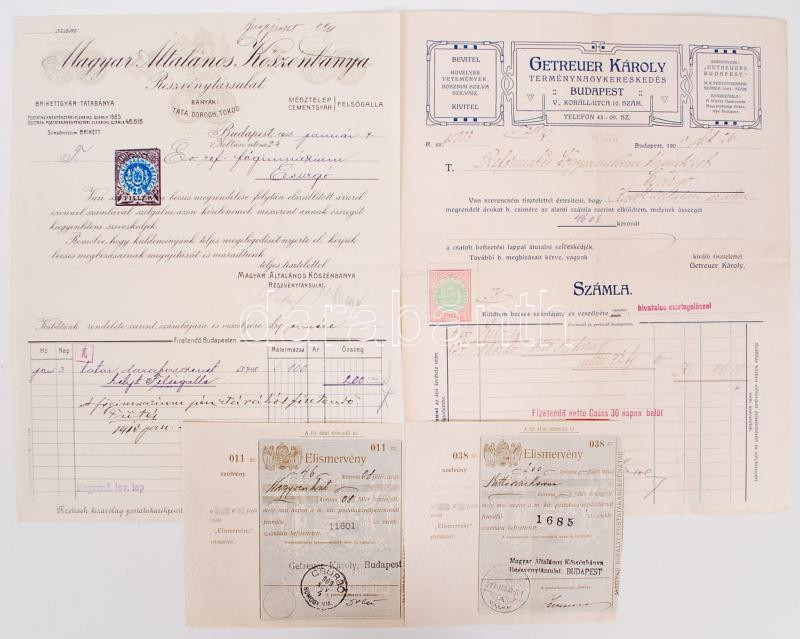1913 Budapest V. Getreuer Károly és Magyar Általános KÖszánbányák 2 db... https://www.darabanth.com/de/174-Fernauktion/174.0/Andere-Sammelgebiete/Dokument~2200015/1913-Budapest-V-Getreuer-Karoly-es-Magyar-Altalanos-KOszanbanyak-2-db-fejleces-szamla~II599530