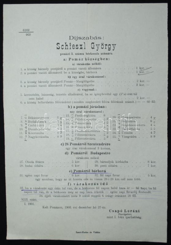 1903 Schieszl György bérkocsis díjszabása 20x30 cm https://www.darabanth.com/de/174-Fernauktion/174.0/Andere-Sammelgebiete/Drucksachen~2200040/1903-Schieszl-Gyorgy-berkocsis-dijszabasa-20x30-cm~II587165