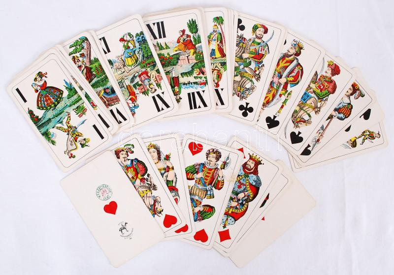 Beschreibung: 42 lapos Tarokk kártya piatnik, megkímélt állapotban