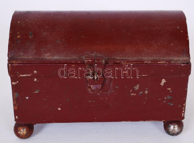 Beschreibung: Cca 1910 festett fém ládika, működő zárral, m:12 cm, h:18 cm, sz:11 cm