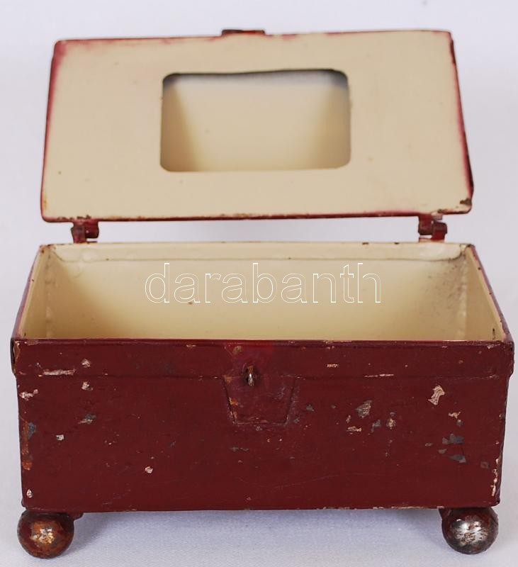 Cca 1910 festett fém ládika, működő zárral, m:12 cm, h:18 cm, sz:11 cm https://www.darabanth.com/de/174-Fernauktion/174.0/Andere-Sammelgebiete/Flohmarkt~2200010/Cca-1910-festett-fem-ladika-mukodo-zarral-m12-cm-h18-cm-sz11-cm~II599349
