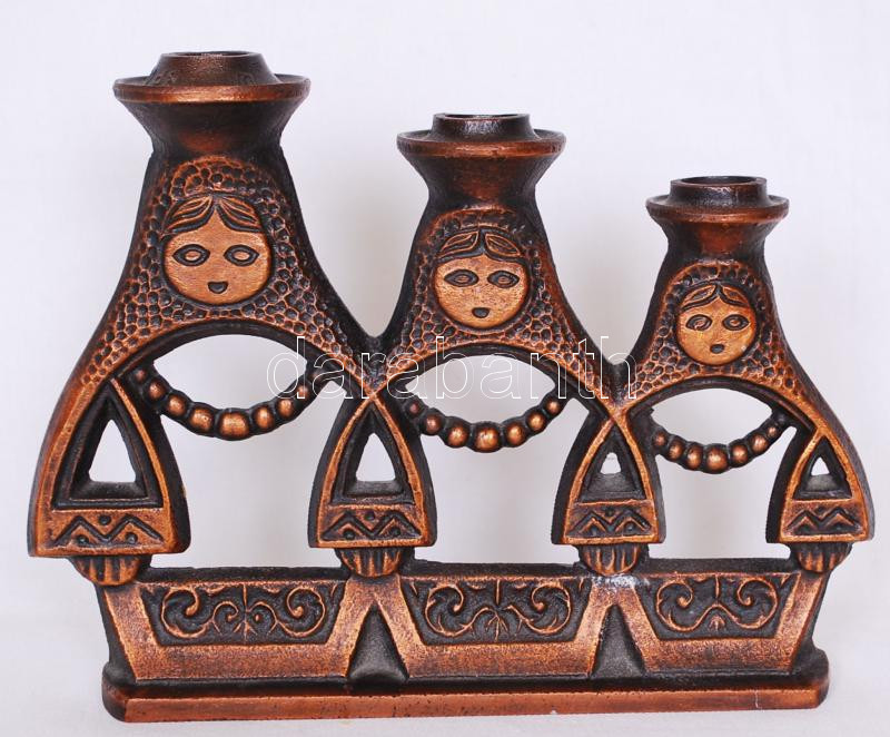 Three-branch metal can... https://www.darabanth.com/de/174-Fernauktion/174.0/Andere-Sammelgebiete/Flohmarkt~2200010/Egyedi-formaju-bronzirozott-fem-gyertyatarto--3Cbr3EThree-branch-metal-candleholder-with-indiv~II597917