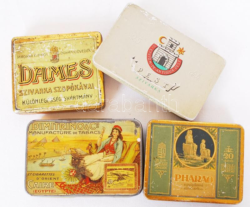 Fém cigarettás, szivarkás dobozok összesen: 4 db, Pharao, Pest, Dimitr... https://www.darabanth.com/de/174-Fernauktion/174.0/Andere-Sammelgebiete/Flohmarkt~2200010/Fem-cigarettas-szivarkas-dobozok-osszesen-4-db-Pharao-Pest-Dimitrino-Dames~II596198