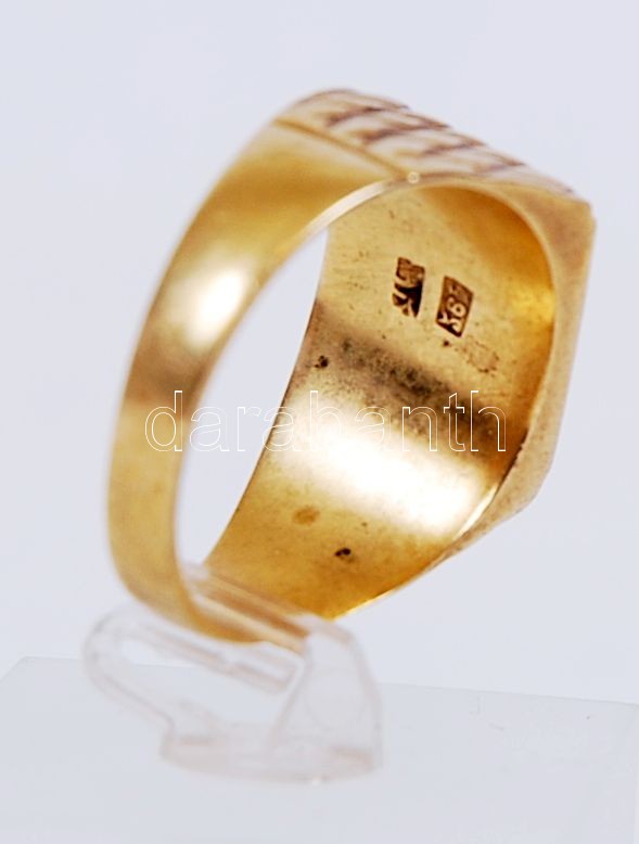 Beschreibung: Férfi pecsétgyűrű rézből (!), 14k jelzéssel, méret: 64