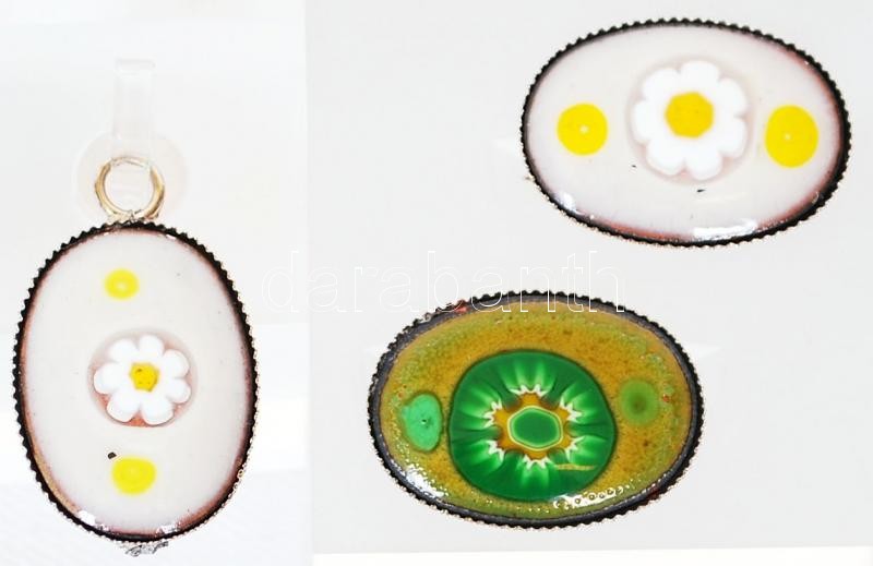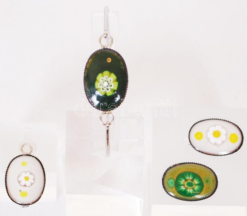 Beschreibung: Zománcozott fülbevaló pár, karkötő és medál