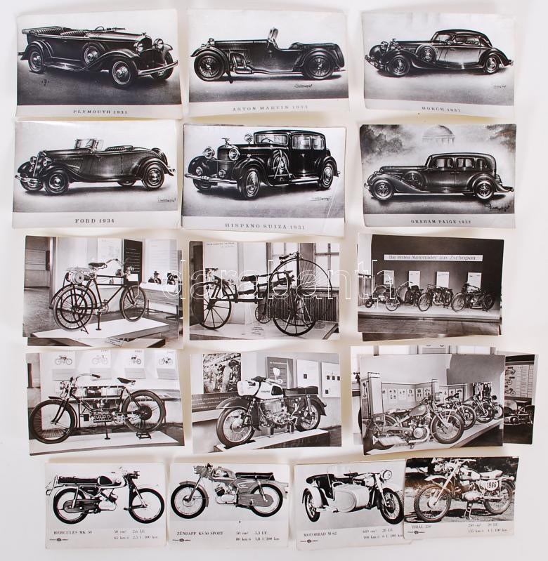 Beschreibung: 47db fekete-fehér fotó régi autó- és motorkerékpár modellek képeivel