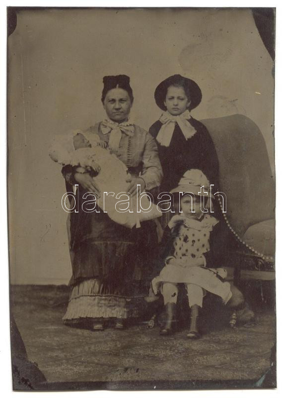 ~1900 Anyát gyermekeivel ábrázoló ferrotípia 6x9cm https://www.darabanth.com/de/174-Fernauktion/174.0/Andere-Sammelgebiete/Foto~2200023/7E1900-Anyat-gyermekeivel-abrazolo-ferrotipia-6x9cm~II549388