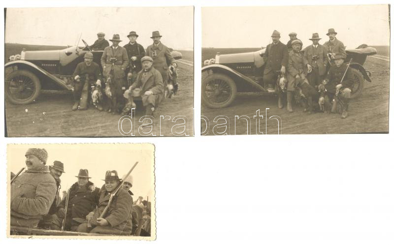 Beschreibung: cca 1940 3db fotó vadászó társaságról, 6x9/8x11cm