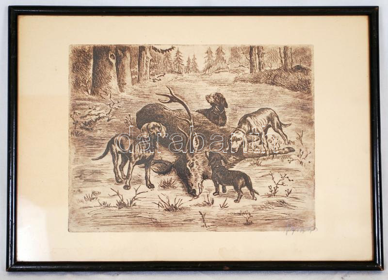 Olvashatatlan jelzéssel: Vadászat. Rézkarc, papír, üvegezett keretben,... https://www.darabanth.com/de/174-Fernauktion/174.0/Andere-Sammelgebiete/Gemalde-und-Grafiken~2200041/Olvashatatlan-jelzessel-Vadaszat-Rezkarc-papir-uvegezett-keretben-25C39735-cm~II596808