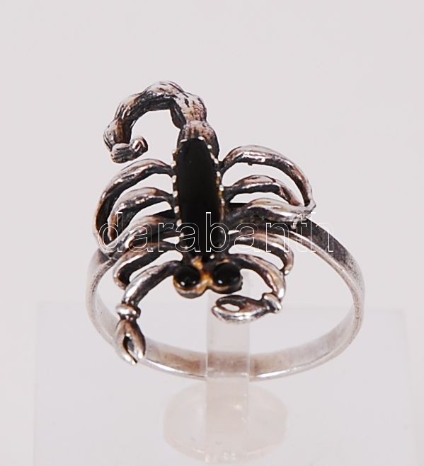 Beschreibung: Skorpió figurával díszített ezüst (Ag) gyűrű ónix kövekkel /