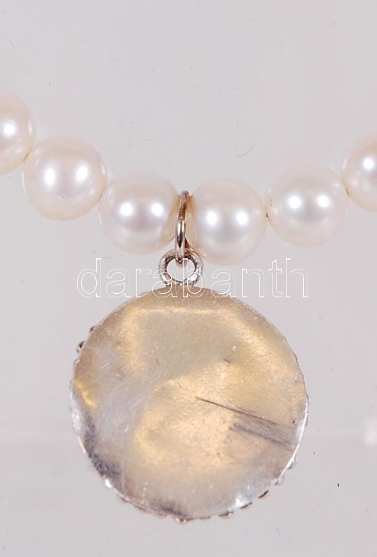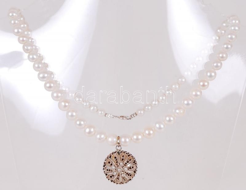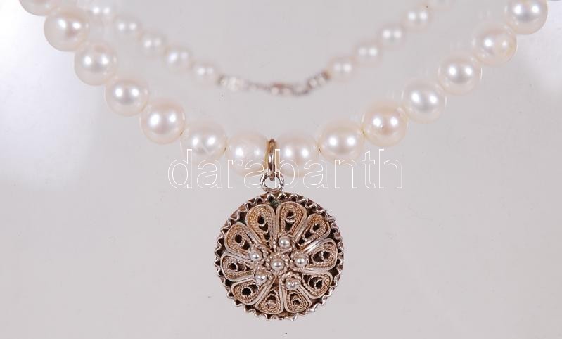 Verlauf édesvizi tenyésztett gyöngy nyaklánc ezüst (Ag) filigrán medállal és ezüst szerelékkel /