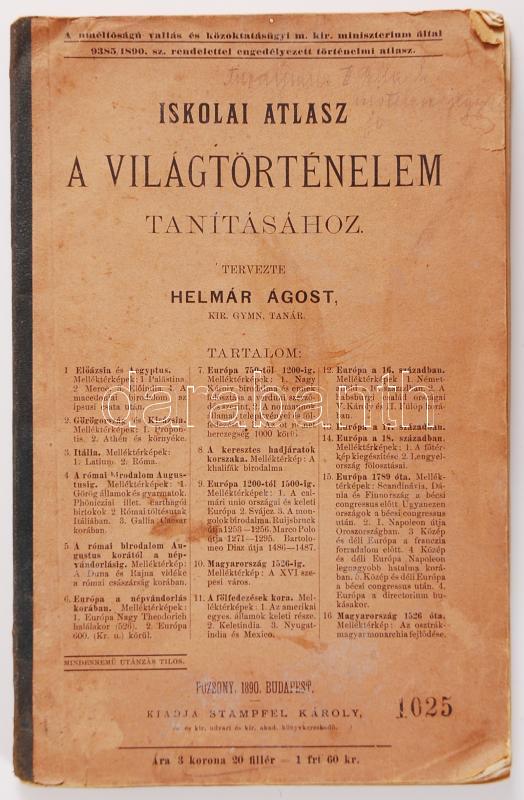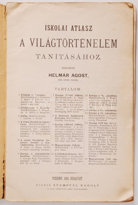 Iskolai atlasz a világtörténelem tanításához. Tervezte: Helmár Ágost. ... https://www.darabanth.com/de/174-Fernauktion/174.0/Andere-Sammelgebiete/Landkarten~2200039/Iskolai-atlasz-a-vilagtortenelem-tanitasahoz-Tervezte-Helmar-Agost-Budapest-Pozsony-1890~II600642
