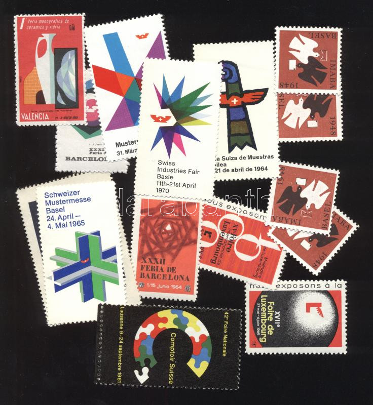 Beschreibung: 15 db külföldi kiállítási levélzáró az 1940-1960-as évekből