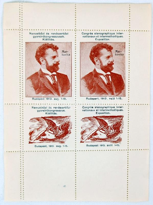 1913 Nemzetközi és rendszerközi gyorsírókongresszusok kiállítás, négye... https://www.darabanth.com/de/174-Fernauktion/174.0/Andere-Sammelgebiete/Paraphilatelie~2200011/1913-Nemzetkozi-es-rendszerkozi-gyorsirokongresszusok-kiallitas-negyes-kisiv~II599486