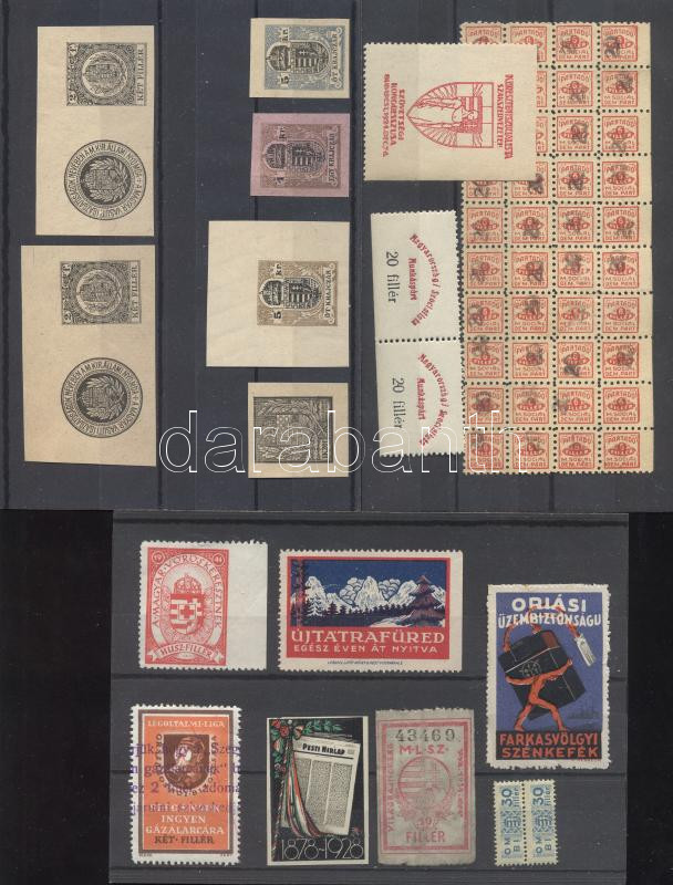 Beschreibung: 6 db magyar levélzáró + zárjegyek + illetékjegy kivágások + Szociáldemokrata párt pártadó bélyegek