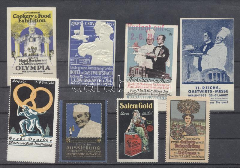 Beschreibung: Vendéglátás, 8 klf régi levélzáró