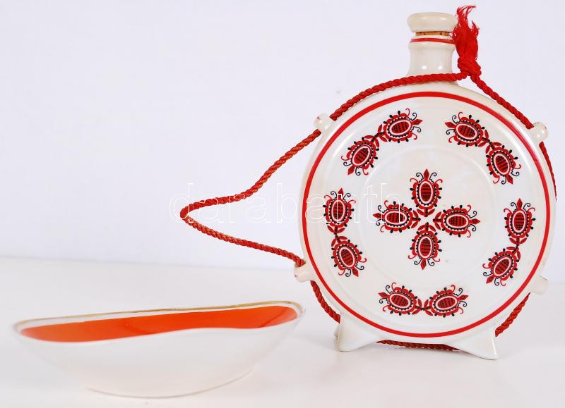 Hollóházi kulacs és kis tálka, jelzettek, hibátlanok, m:16 cm, 13×9 cm https://www.darabanth.com/de/174-Fernauktion/174.0/Andere-Sammelgebiete/Porzellan~2200006/Hollohazi-kulacs-es-kis-talka-jelzettek-hibatlanok-m16-cm-13C3979-cm~II600264
