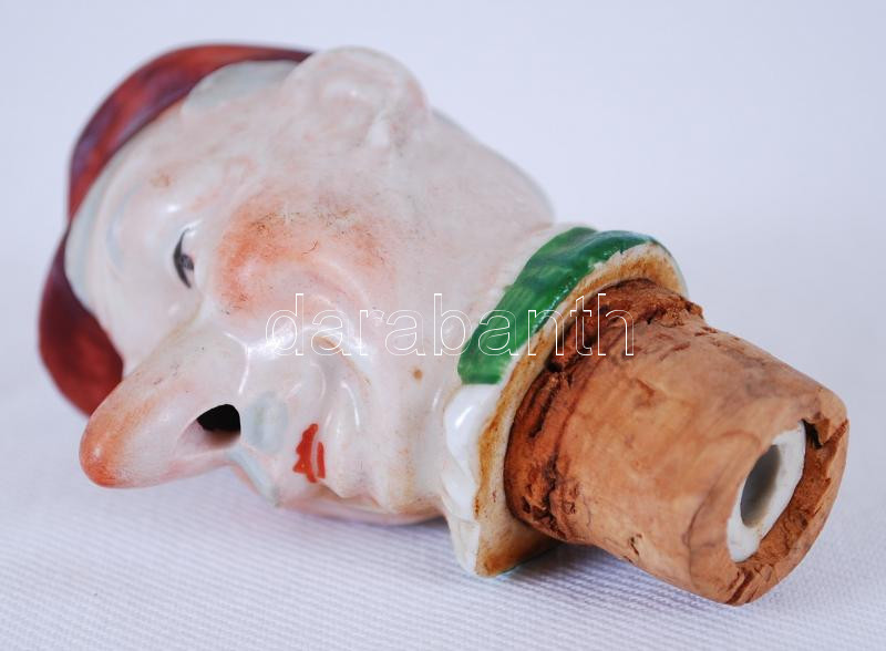 Beschreibung: Humoros férfi fejet formáló, kézzel festett porcelán dugó (kis lepattogzással) /