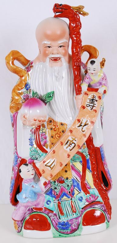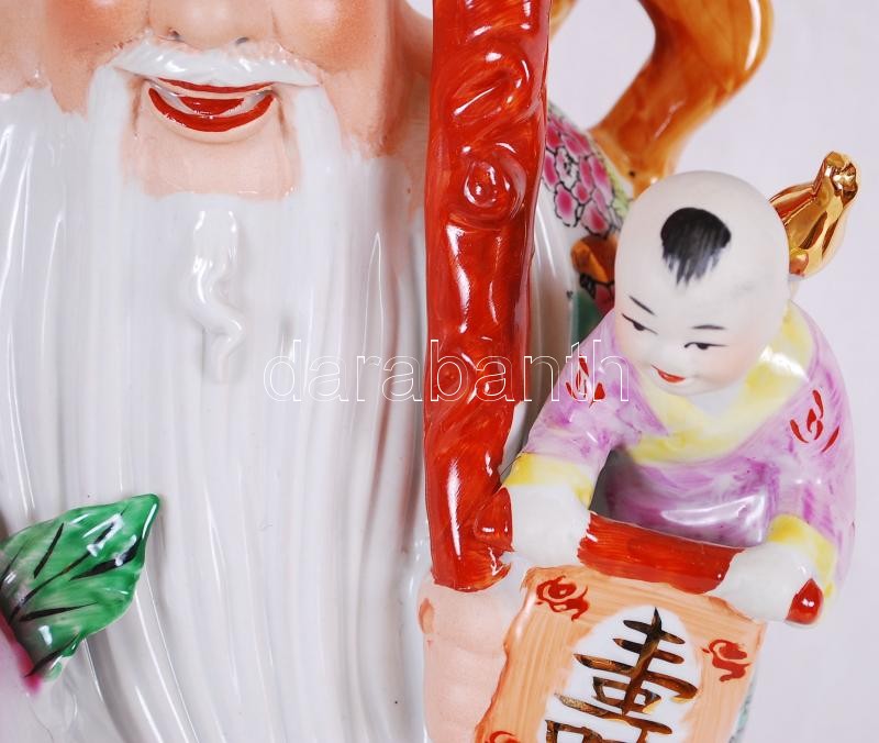 Shou Lao (a hosszú élet istene), kézzel festett, hibátlan, jelzés nélkül, m:59 cm, h:25cm, sz:13 cm/ Shou-Hsing (god of longevity),hand painted chinaware,, flawless condition, h:59 cm