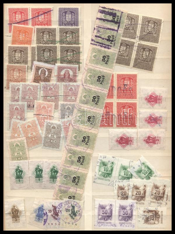 138 db okmánybélyeg nagyrészt összefüggésekben https://www.darabanth.com/de/174-Fernauktion/174.0/Andere-Sammelgebiete/Stempelmarken~2200013/138-db-okmanybelyeg-nagyreszt-osszefuggesekben~II596352