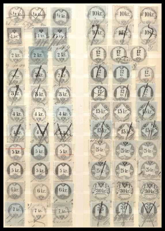 Beschreibung: 66 db régi okmánybélyeg közte összefüggések