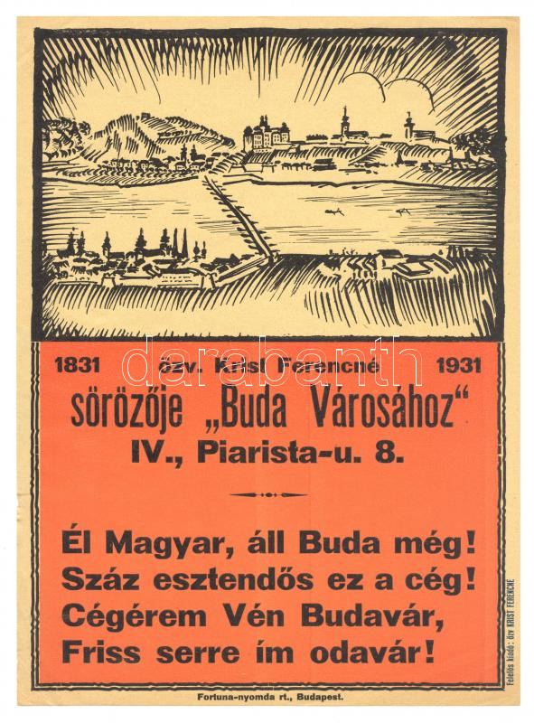 1931 Budapest V. Söröző reklámos kisplakát 18x24 cm https://www.darabanth.com/de/174-Fernauktion/174.0/Andere-Sammelgebiete/Werbungen~2200025/1931-Budapest-V-Sorozo-reklamos-kisplakat-18x24-cm~II596810