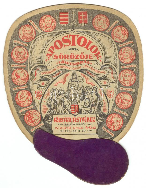 cca 1930 Budapest V. Apostolok söröző reklám-legyező / Beer commercial... https://www.darabanth.com/de/174-Fernauktion/174.0/Andere-Sammelgebiete/Werbungen~2200025/cca-1930-Budapest-V-Apostolok-sorozo-reklam-legyezo-Beer-commercial-fan-20x12-cm~II596838